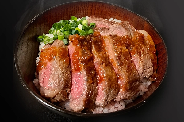 - 肉はアツいウチに食うべし!ダイナマイトのビフテキ丼は記憶にも胃袋にも残る逸品です低温熟成ロゼ肉の『味力』をどうぞ!