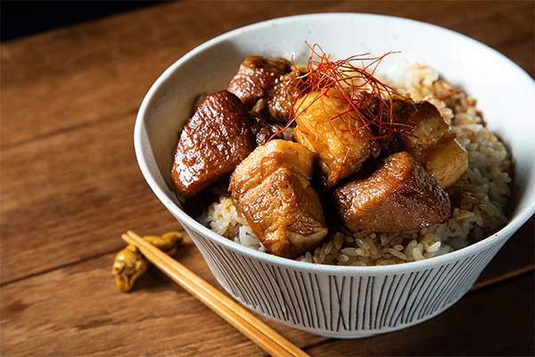 - 大きめにカットした豚肉がゴロゴロ入った食べ応え抜群のルーロー飯!甘辛ダレがご飯に絡み、満足感たっぷりの一杯です。