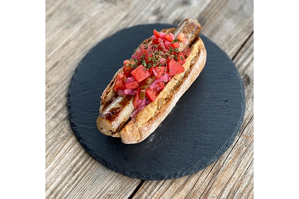 - 山梨県産ブランド豚「甲州富士桜ポーク」の厳選部位を100%使用した無添加ソーセージ。ライ麦パンを合わせた、食べ応え抜群のプレミアムホットドッグです。