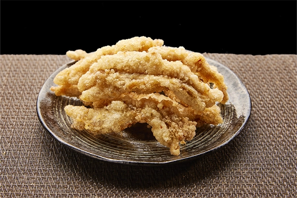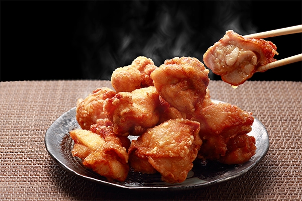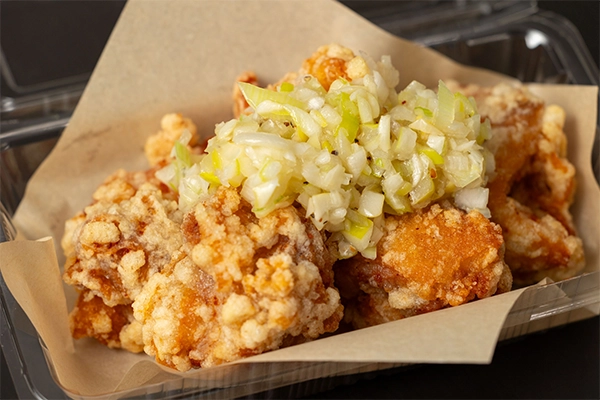 - 九州産を主とした国産生肉に、一ヶ月以上熟成させた秘伝のタレに漬け込み、衣はサクッと中身はジューシーで後引く旨さが、おやつ・おつまみ・おかずにと好評を頂いております。