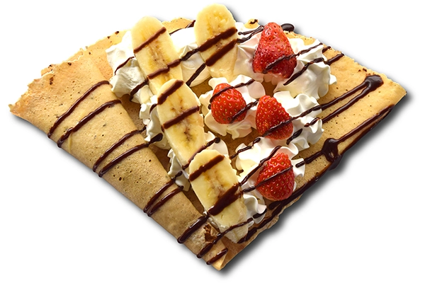 - 契約農家直送の新鮮たまごを使用したもちもち生地でフルーツ、ホイップを包んだクレープをご提供いたします。