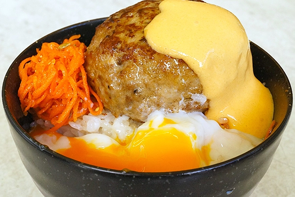 - 温⽟チーズを最初から全部のせ。⽜100%の ⼿ごねハンバーグをなんと150g!ボリューム満点の⾁を感じられるバーグ丼!これぞ究極のフェス⾁メシ。